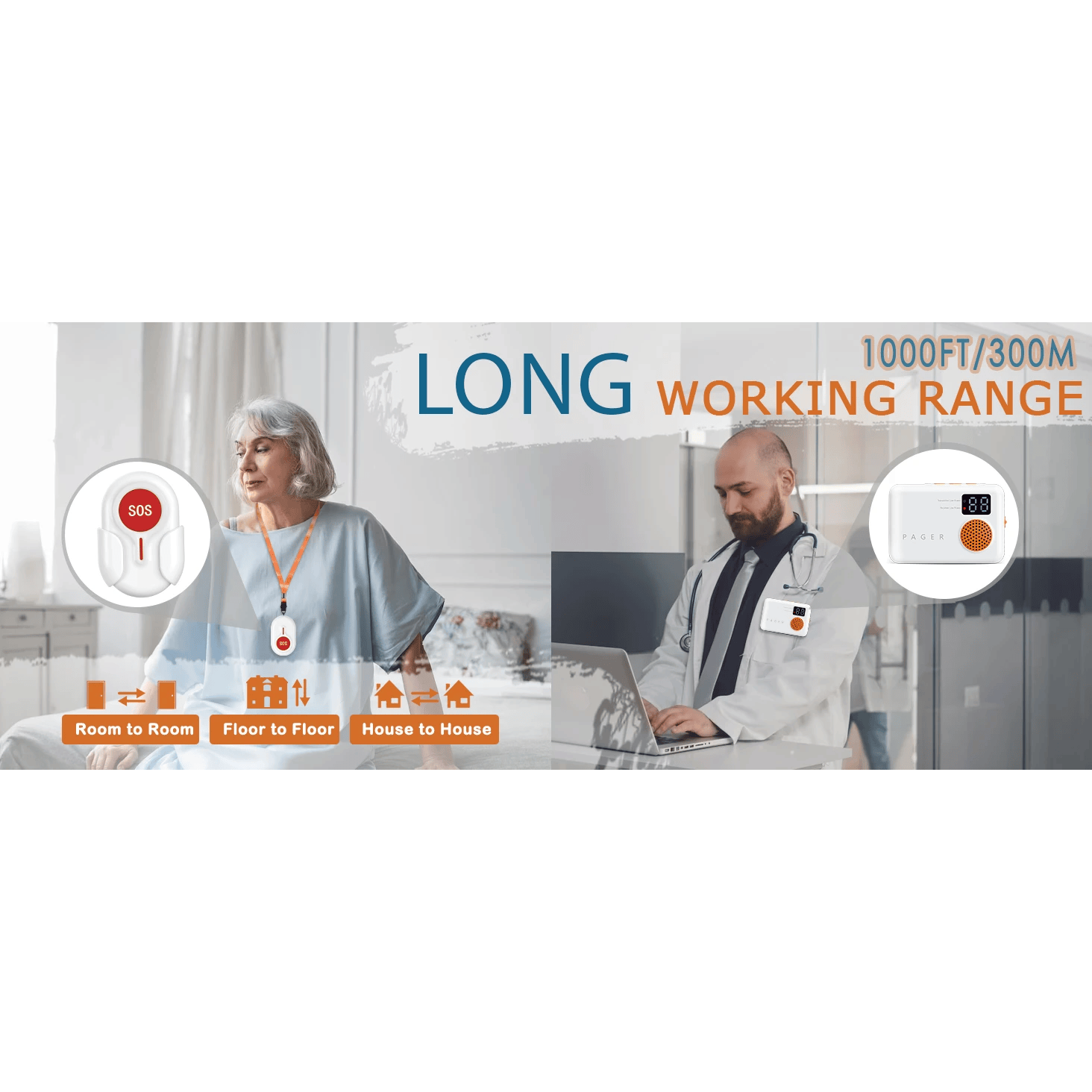 - Effective Wireless Coverage: This caregiver pager offers a reliable wireless connection with a range of up to 300mtrs, ensuring seamless communication between caregivers and elderly individuals, even in large spaces.